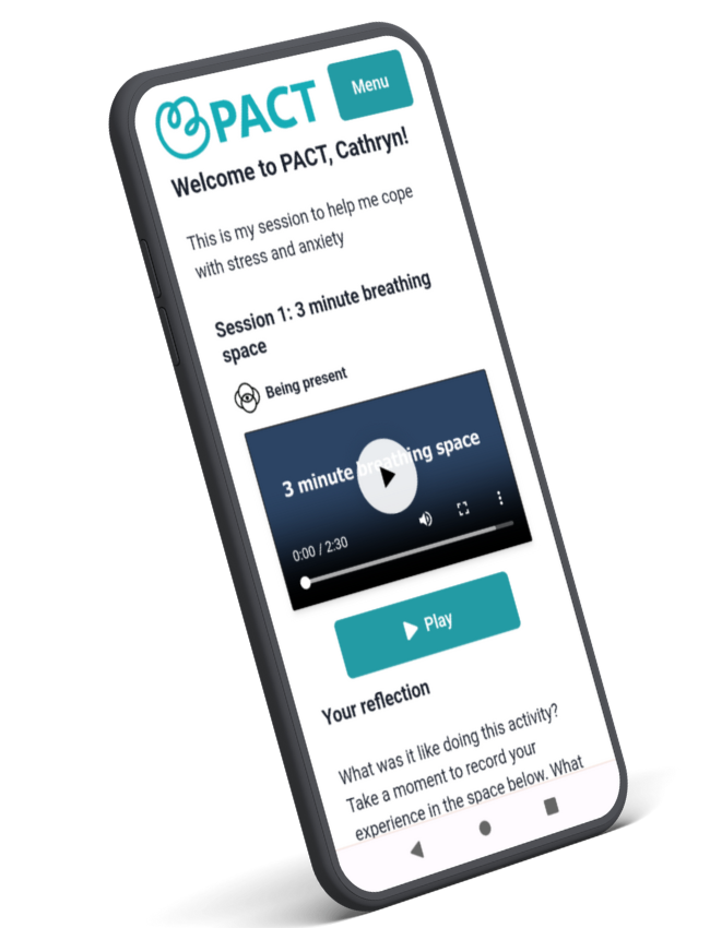 The PACT app is designed to provide Personalised Acceptance and Commitment Therapy for individuals with Parkinson’s disease. It offers short, daily activities including audios, videos, and self-reflection exercises that help improve psychological well-being.
